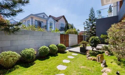Villa B12 - KQH Viện nghiên cứu hạt nhân Hùng Vương, phường 11. Căn này 5 phòng ngủ, 4 toilet Villa cao cấp thiết kế sang trọng hiện đại, nội thất trong căn đầy đủ tiện nghi Thiết kế căn không gian mở, lấy ánh sáng từ bên ngoài - Phòng khách và bếp không gian mở có đủ dụng cụ nấu nướng đơn giản cho gia đình sử dụng - Có đàn Piano, máy tập thể dục - 1 phòng đọc sách - Có khu để làm bbq, bếp và bàn ghế đầy đủ - Đậu xe ngay trước căn thoải mái - View nhìn đẹp nhìn ra rừng thông Tiêu chuẩn căn cho 10 khách