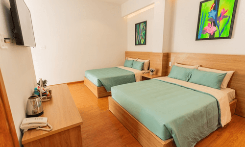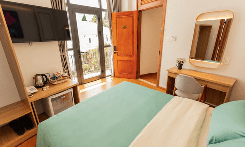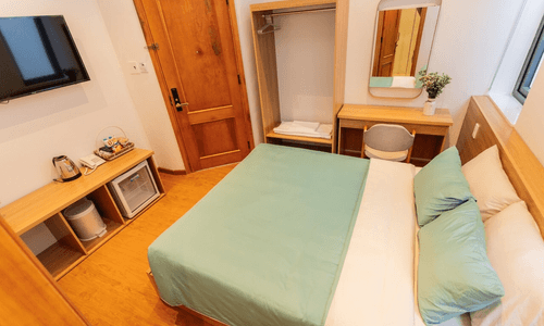 ???Phòng đầy đủ tiện nghi: tivi, tủ lạnh, máy sấy tóc, bình siêu tốc, trà,, nước uống, đồ dùng cá nhân theo tiêu chuẩn 3 sao.
