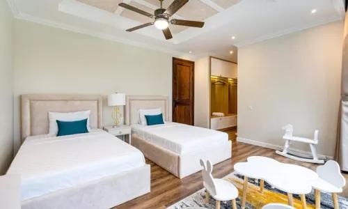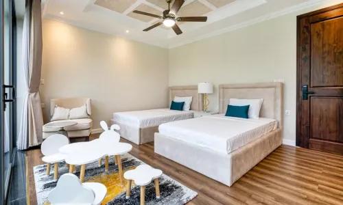 Villa sang trọng với trang thiết bị hiện đại, đầy đủ tiện ích với cơ cấu phòng: 7 phòng ngủ: 1 dorm cho 9 khách, 1 phòng 2 giường đơn cho 2 khách, 5 phòng 1 giường đôi mỗi phòng 2 khách. Tất cả đều có toilet riêng bên trong phòng và 2 toilet chung bên ngoài.