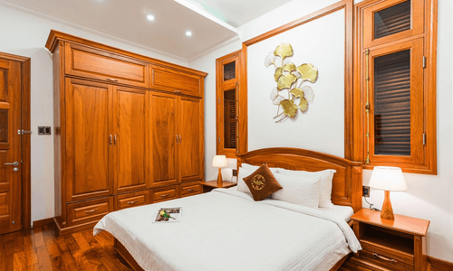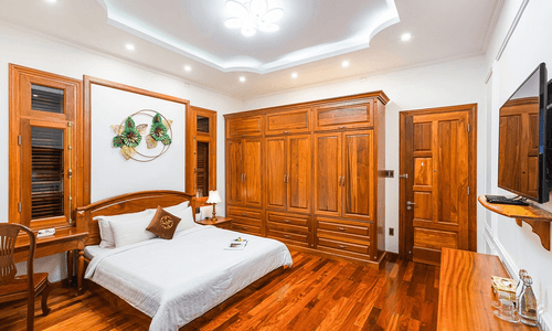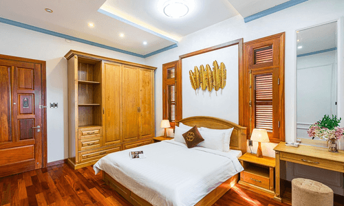 Villa sân vườn 6 phòng ngủ đơn toilet trong (trong đó có 1 phòng master có buồng xông hơi), giường 1.8m, tất cả các phòng đều có cửa sổ/ban công, rộng trung bình 32m2/phòng.