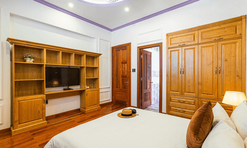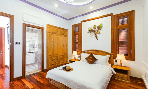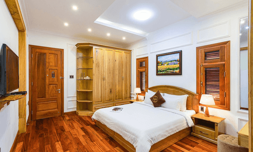 Villa sân vườn 6 phòng ngủ đơn toilet trong (trong đó có 1 phòng master có buồng xông hơi), giường 1.8m, tất cả các phòng đều có cửa sổ/ban công, rộng trung bình 32m2/phòng.
